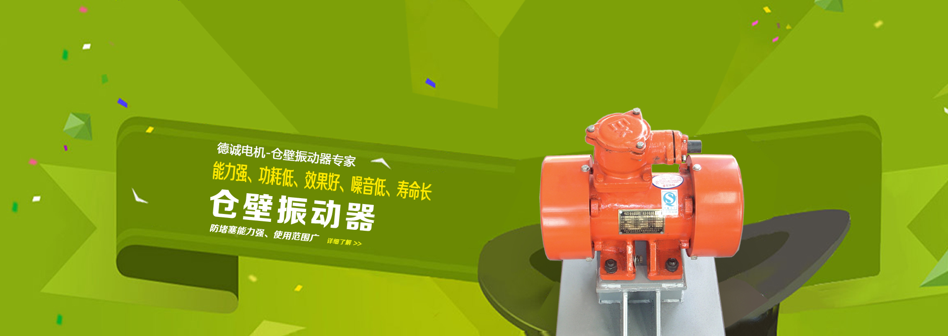 公司簡介 專注制造振動電機, 高定位、高質量、高服務 專注電機制造,專業用心服務 新鄉市德誠電機制造有限公司是一家專業生產振動電機、倉壁振動器、振動平臺的廠家,有10多年生產歷史,如今發展成占地900多平方,員工30多人的企業。我們 秉承做好產品,全力服務的宗旨,為振動篩行業未來再立新功。 品質鑄就品牌,創新引領未來 振動電機生產廠家產品主要型號:YZUL、YZULL、YZO、YZS、YZD、Y...